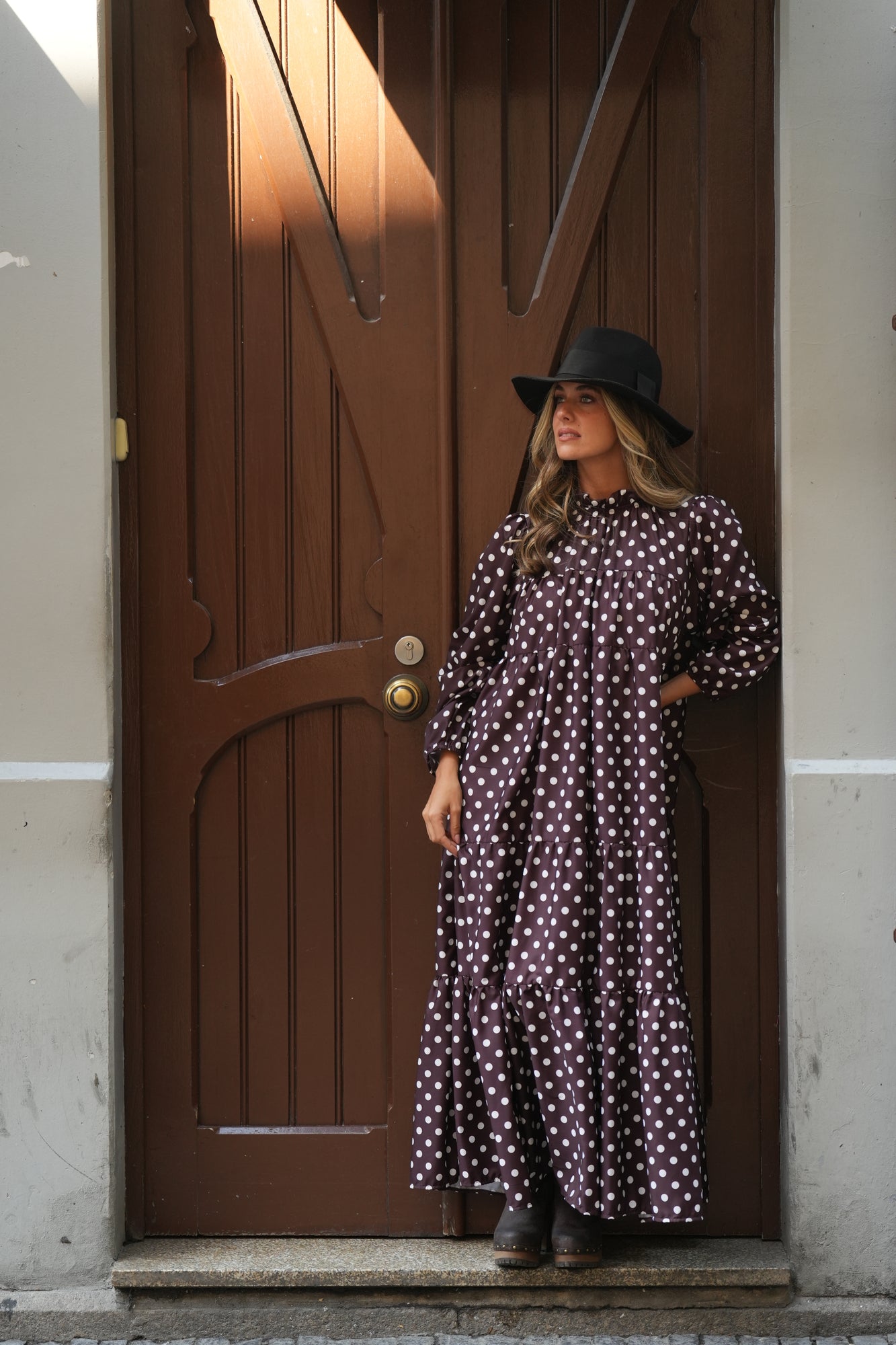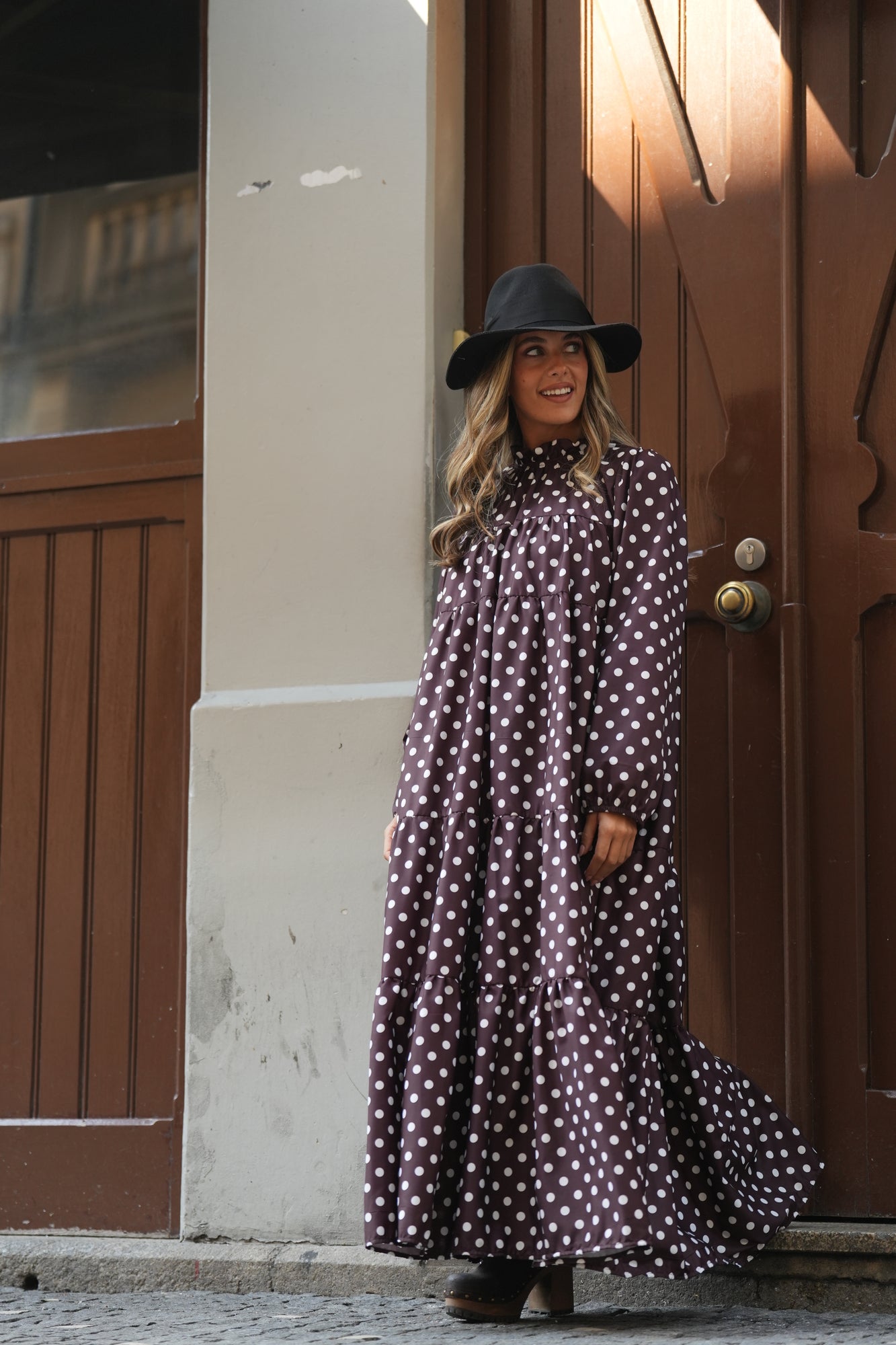 - Vestido comprido com folhos